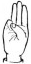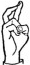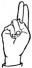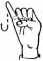 На ћирилици написано АНДЈЕЛИНА ШВРАКА састоји се из 15 слова [?]. Исписано ћириличном једноручном азбуком за глувонеме: